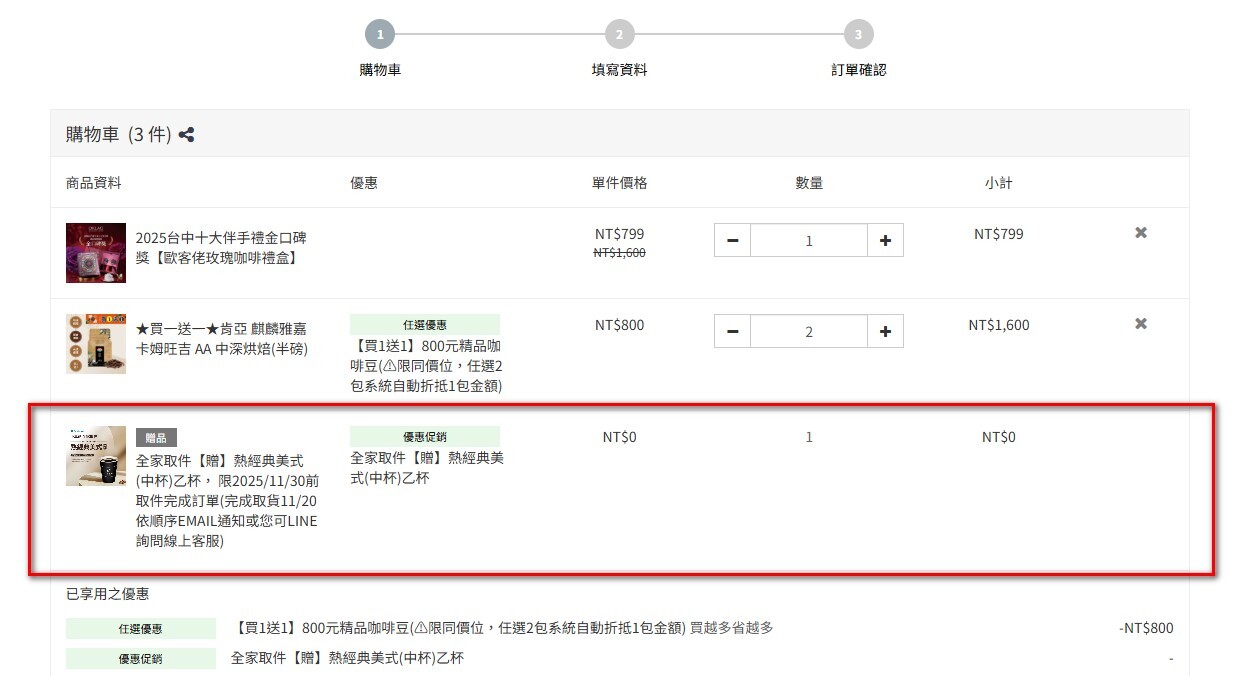 ※購物車列表頁有顯示 全家取件【贈】熱經典美式(中杯)乙杯, 限2025/11/30前取件完成訂單(完成取貨11/20依順序EMAIL通知或您可LINE詢問線上客服)